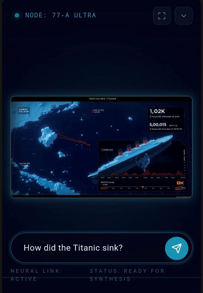 A new kind of AI experience where answers are delivered not as text but as a single visual. Enter any question and instead of reading paragraphs, you instantly see an AI-generated image representing the idea behind your query. Fast, intuitive, entirely visual - turns questions into pictures.