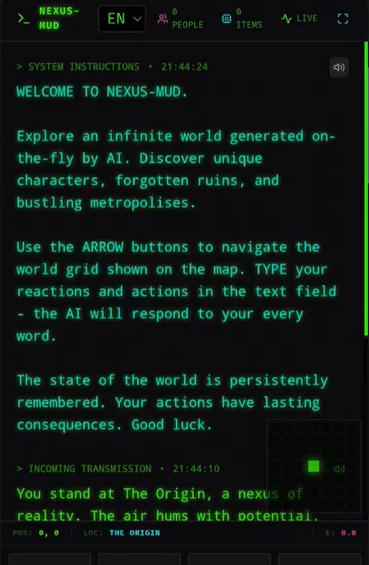 Nexus-MUD - Infinite AI-Generated Text World
