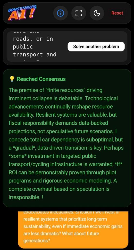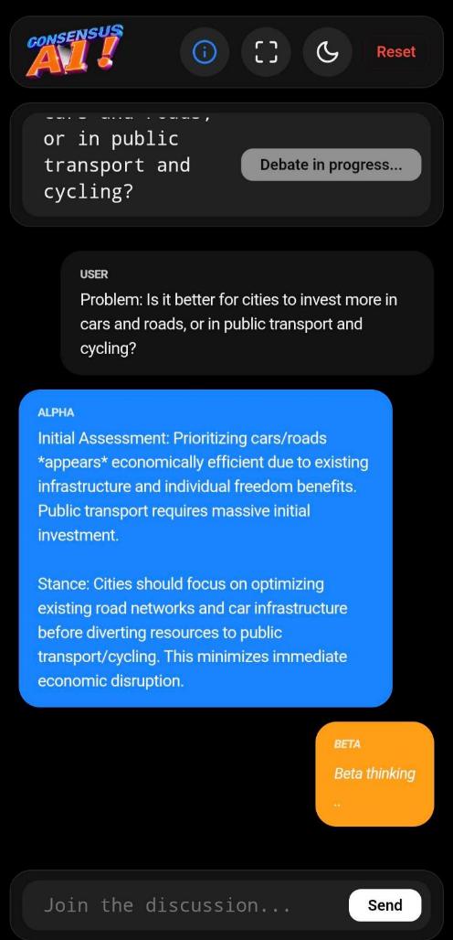 Instead of instant answers, two AI personas start from opposite viewpoints on your problem, debate, challenge each other's arguments, refine positions, and converge toward common ground. Useful for difficult decisions, complex tradeoffs, and exploring multiple perspectives before reaching a conclusion.