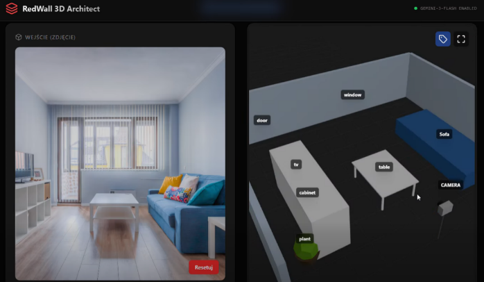 Upload any room photo (even low-quality phone shots) and AI reconstructs the 3D structure, estimates camera position, and recognizes furniture with approximate dimensions. Navigate the scene in 3D, switch between realistic and semantic views. Powered by Gemini 3 Flash. Useful for interior designers and real estate agents.