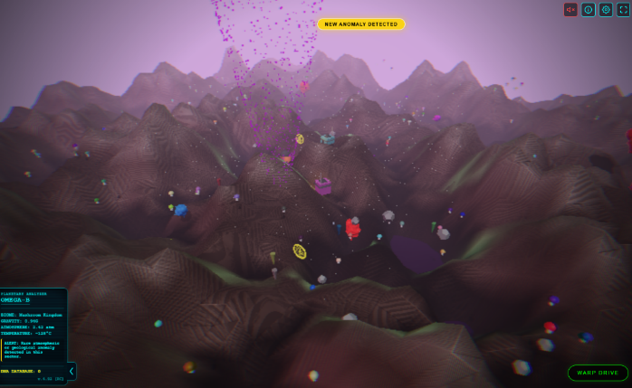Explore a procedurally generated universe of exoplanets filled with strange lifeforms and unexplained phenomena. Discover unique ecosystems, encounter rare anomalies, and capture extraordinary creatures - each with detailed characteristics. Scan, collect, and build your own cosmic archive as you travel across distant star systems.