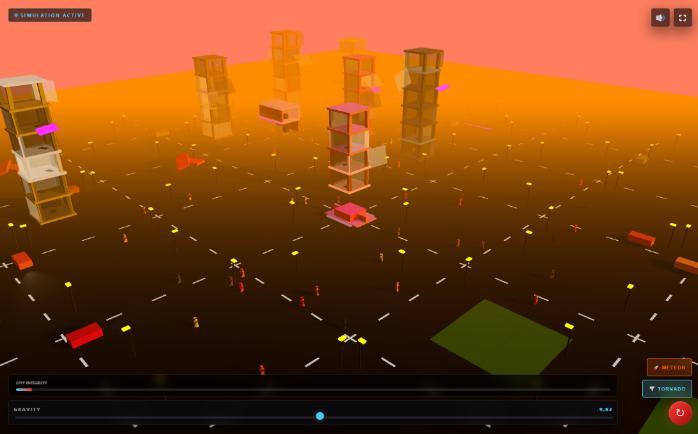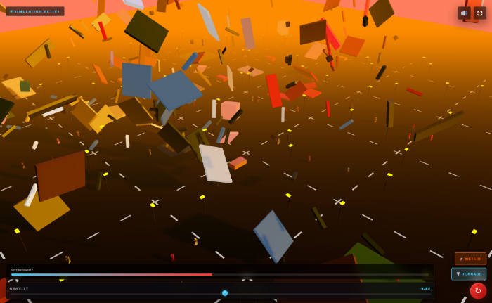 Choose your force - earthquake, tornado, or meteor - and watch the city face it in real time. Shake your smartphone to trigger earthquakes. Dynamic physics, collapsing structures, shockwaves, and debris make every scenario unpredictable. City Integrity meter tracks total destruction progress.