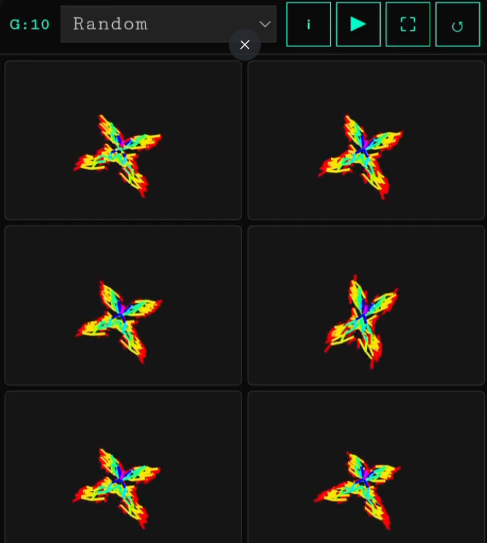 A recreation of Dawkins' classic Biomorphs from The Blind Watchmaker, now with behavior mutations in 3D. Simple genetic parameters evolve shapes and movements illustrating how cumulative selection produces complexity without foresight. Also includes the original 2D Biomorphs version as described by Dawkins.