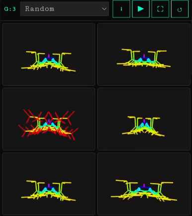 Mechanical creatures with physical joints and sensors that dock onto each other, form increasingly complex mega-structures, and evolve over generations. Emergent locomotion strategies arise from physical constraints and selection pressure.